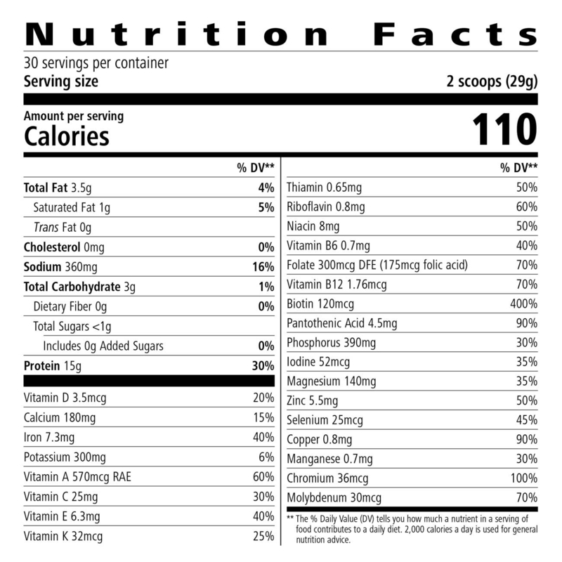 • 15 gramos de proteína de soya por porción para ayudar a saciar el hambre y proporcionar energía duradera